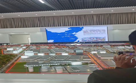 在工作人員的帶領下,我們首先參觀了周口港區(qū)總體沙盤規(guī)劃,對周口港有了一個初步了解。周口港2005年12月建成,2006年4月投入使用。周口港是河南省周口市的一個內(nèi)河港口,是國家規(guī)劃的91個主要港口之一、是國家綜合立體交通網(wǎng)規(guī)劃綱要確定的全國36個內(nèi)河主要港口之一,也是河南省唯一一個全國主要港口。截至2022年2月,周口港已經(jīng)形成年3500萬噸以上的貨運周轉(zhuǎn)能力。通江達海開通了至淮安港、太倉港、連云港港、大豐港、上海港5條國內(nèi)集裝箱航線和至洛杉磯長灘港國際集裝箱航線。