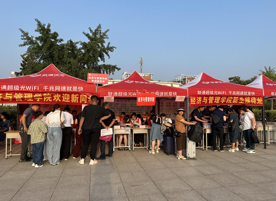 還有我們十分辛苦的志愿者穿梭于迎新現(xiàn)場,時刻等待著為新同學(xué)伸出援手,幫他們提行李,給他們帶路。并且向?qū)W弟學(xué)妹們介紹了關(guān)于團總支納新的情況,讓他們對經(jīng)管學(xué)院這個大家庭有更進一步的了解,更快更好的融入這個溫暖的大家庭。