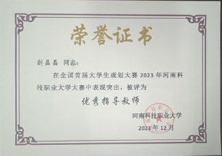 比賽獲獎(jiǎng)不僅是對獲獎(jiǎng)選手們的支持和鼓勵(lì),更是對獲獎(jiǎng)選手身后的指導(dǎo)老師的肯定。在本次大賽中,我院劉晶晶、張靖文兩位老師被評為“優(yōu)秀指導(dǎo)教師”。